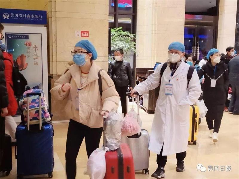 湖南、山东两支医疗队增援黄冈 疫情发生以后,黄冈市迅速成立市级医疗救治专家组,抽调1200多名医务工作者投入救治工作,建立医护人员梯队。