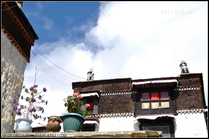 偶尔的相遇,注定今后的一生。 网友旁白:万法皆生,皆系缘份。缘起缘灭,缘生已空。----向日葵花籽 此卐字符号,是吉祥的意思。这个标志,意思是“吉祥海云相”,被佛教徒认为是“瑞相”,能涌出宝光,“其光晃昱,有千百色”。 沿着古老的石板路缓缓前行,扎什伦布寺给我的印象远比布达拉宫、大昭寺好得多,殿殿相连、巷巷相通。很喜欢寺内的很多小路,古巷幽幽,讲述着千年故事,幽静又富有情调。长长的转经廊、高高的玛尼堆、猎猎飞扬的风马旗、一尊尊庄严的佛像、精美无比的壁画不断映入眼帘,眼睛受到强烈的视觉冲击。我不信宗教,但在西藏,面对这些因虔诚而诞生的庄严,我的内心总是充满着敬畏和感动。精神和思想、思想和灵魂总是依附在一起。一样的道理,残留在壁画上的语录也不是用一把刷子就能轻轻刷掉的,存在就是道理,历史会永远记住这些,也会记住那些。