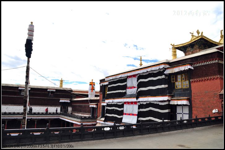 扎什伦布寺是西藏日喀则地区最大的寺庙,位于日喀则市城西的尼玛山上。扎什伦布寺为四世之后历代班禅驻锡之地。它与拉萨的“三大寺”甘丹寺、色拉寺、哲蚌寺合称藏传佛教格鲁派的“四大寺”。也是全国著名的六大黄教寺院之一。 扎什伦布寺是后藏地区最主要的旅游景点,寺外的广场很大,停车很方便 没买门票,三个人就这样径直进去,里面又是一个很大的广场,看上去整个寺院依山坡而筑,宫墙沿山势蜿蜒迤逦,整座寺院背附高山,座北朝南,殿宇依次递接,疏密均衡,和谐对称。