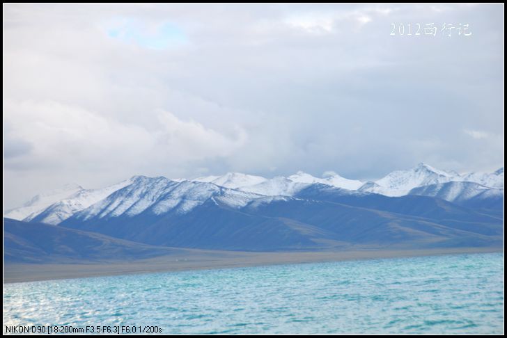 远处是念青唐古拉山的英姿,近处是纳木措湖的秀色,明净辽阔的湖面倒映着念青唐古拉山的身影,念青唐古拉山消融的冰雪补给纳木措湖水,“神山和圣湖”相互映衬,相得益彰,古老动情的传说,加上如此雄伟壮丽的神山圣湖,难怪千百年来,它为信徒们深深的所敬仰 湖水清灵剔透,湖蓝如海,蓝宝石一样的湖水,无边锦缎一般地直铺雪山脚下,水天相融,浑然一体。 远处的天空和云山展现出一座庞大的蘑菇云带,在风的吹动下,不断扩展,变化万千